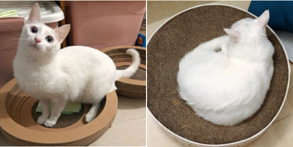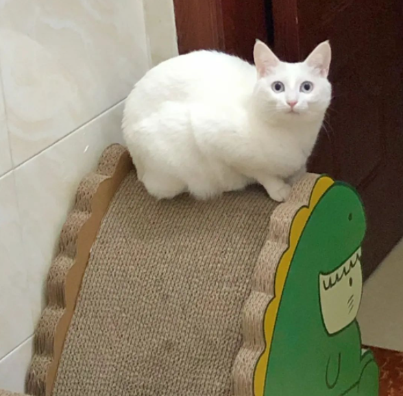 cat scratching post nobleza and cat scratching bowl, the entry level must-have level. Inexpensive, comes with a box that pockets confetti, dust, keeps keep clean and is better to clean up. These two types of cat scratching boards, cats also like, large enough for cats to stretch out and grind their claws to their heart's content. The bottom has also cat scratching board, can also grind claws, equivalent to an upgraded version of the ordinary cat scratching board. Xiaobai usually also likes to squat on it and use it very often. Tilted angle of the cat scratching board, the most deeply loved by the little white cat, regret not having photographed the later dinosaur back was scratched holes in the picture! Of course, there are downsides, confetti and dust will fall on the floor. Personal experience, cats prefer nest-shaped this kind of cat scratching board, because it is relatively flat at the bottom, good to scratch, with a sense of feeling, but also can pillow head, comfortable. So, when you buy a cat scratching board nest, you can choose to wrap the edge of the thick and wide a little bit, the cat pillow does not hurt. And the right side of this inward layer of recessed cat scratching board, cats rarely scratch, at most in the inside to sleep. The kind of toffee sofa cat scratching board is also good, you can sharpen the claws, but also can lie down on all fours to sleep.